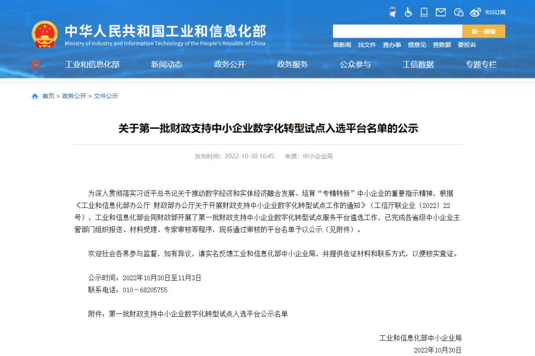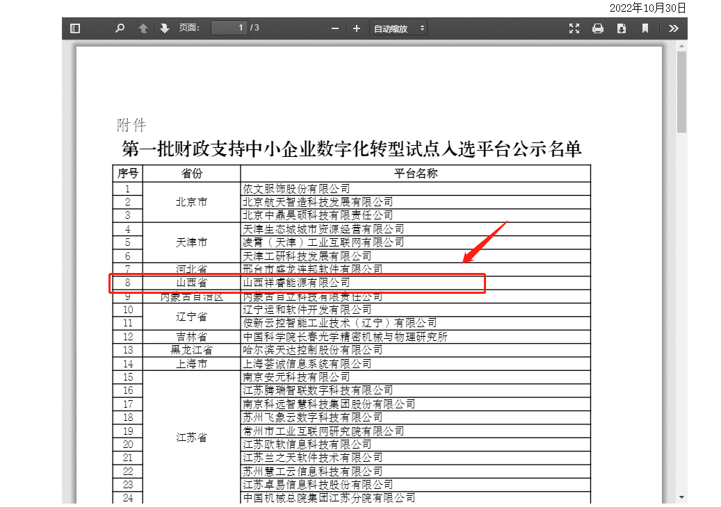 近日,工業(yè)和信息化部公示了第一批財政支持中小企業(yè)數(shù)字化轉(zhuǎn)型試點入選平臺名單,山西祥睿能源有限公司名列其中,是山西省唯一一家入選企業(yè)。