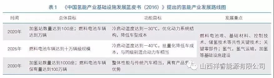 2.4 韓國氫能與燃料電池發(fā)展現(xiàn)狀 韓國在氫能和燃料電池領(lǐng)域也有較強的規(guī)劃布局,但是其相關(guān)技術(shù)實力較歐、美、日略遜一籌。以現(xiàn)代等汽車企業(yè)為依托,韓國政府未來 5 年內(nèi)用于氫燃料電池以及加氫站的補貼將達到 20 億歐元。目標是到 2022 年為 15 000 輛燃料電池汽車和 1 000 輛氫氣公交車提供資金。其中資助計劃包括 310 個新的氫氣加氣站,政府還將制定使用法規(guī)[8]。韓國政府于 2019 年 1 月發(fā)布“氫能經(jīng)濟發(fā)展路線圖”,旨在大力發(fā)展氫能產(chǎn)業(yè),以引領(lǐng)全球氫燃料電池汽車和燃料電池市場發(fā)展。 根據(jù)該路線圖,韓國政府計劃到 2040 年氫燃料電池汽車累計產(chǎn)量由 2018 年的 2 000 余輛增至 620 萬輛,氫燃料電池汽車充電站從現(xiàn)有的 14 個增至 1 200 個。韓國政府表示將開始為燃料電池出租車和卡車提供補貼,到 2022 年燃料電池公交車數(shù)量將增加到 2 000 輛,并預(yù)計在 2021 年開始用燃料電池車取代燃油警車。 在固定式燃料電池方面,韓國目前的發(fā)展重點在于大型燃料電池發(fā)電站。韓國斗山集團是推動該項目建設(shè)的主體。2017 年 6 月,該集團完成了韓國最大的氫能燃料電池發(fā)電站的建設(shè),而該發(fā)電站的建設(shè)成本大約有 3 600 萬美元。據(jù)報道,該發(fā)電站每年可生產(chǎn) 144 臺 440 千瓦的燃料電池系統(tǒng),可以滿足市場的需求。 3 國內(nèi)氫能與燃料電池發(fā)展現(xiàn)狀及分析 3.1 國內(nèi)氫能產(chǎn)業(yè)鏈的結(jié)構(gòu)分析 氫能產(chǎn)業(yè)鏈主要包括:氫的制取、儲存、運輸和應(yīng)用等環(huán)節(jié)。氫既可廣泛應(yīng)用于傳統(tǒng)領(lǐng)域,又可應(yīng)用于新興的氫能車輛(包括乘用車、商用車、物流車、叉車、軌道車等)以及氫能發(fā)電(包括熱電聯(lián)供分布式發(fā)電、發(fā)電儲能、備用電源等)。 為加快發(fā)展中國的氫能產(chǎn)業(yè),依據(jù)目前的資源條件和能源產(chǎn)業(yè)狀況,應(yīng)在加強氫安全的基礎(chǔ)上,積極推行氫源多元化及氫能多元化和規(guī)?;瘧?yīng)用。我國近年來每年純度 99% 以上氫氣的使用量約 700 億立方米(約 600 萬噸),年產(chǎn)值 1 200 億元人民幣以上。目前國內(nèi)發(fā)展氫能的生產(chǎn)方式,主要有煤制氫、天然氣制氫和工業(yè)副產(chǎn)氫,其中工業(yè)副產(chǎn)氫追溯其上游一次能源主要還是煤和天然氣。 因此,目前國內(nèi)氫能生產(chǎn)主要還是依靠化石能源,而電解水制氫僅占比 2%—4%,占比較為有限。對于氫能的消費,國內(nèi)大約 90% 或更多純度 99%左右的氫氣都用于煉化產(chǎn)品生產(chǎn)過程中的加氫,以及合成氨、合成甲醇、石油煉化等化工領(lǐng)域,僅有 2%—4% 的氫氣作為工業(yè)氣體用于冶金、鋼鐵、電子、建材、精細化工等行業(yè)的還原氣、保護氣、反應(yīng)氣等,而在燃料電池汽車領(lǐng)域氫能的利用更少??傮w看,目前我國具備一定的氫工業(yè)基礎(chǔ),但是仍然還是以工業(yè)原料為主。氫作為能源消費的市場規(guī)模依然較小。 在氫能和燃料電池發(fā)展方面,我國也一直不落后。2016 年 10 月,中國標準化研究院資源與環(huán)境分院和中國電器工業(yè)協(xié)會發(fā)布的《中國氫能產(chǎn)業(yè)基礎(chǔ)設(shè)施發(fā)展藍皮書(2016)》首次提出了我國氫能產(chǎn)業(yè)的發(fā)展路線圖(表 1)。對我國中長期加氫站和燃料電池車輛發(fā)展目標進行了規(guī)劃。《中國制造 2025》明確提出燃料電池汽車發(fā)展規(guī)劃,更是將發(fā)展氫燃料電池提升到了戰(zhàn)略高度。目前不論是國內(nèi)的氫能技術(shù),還是氫能產(chǎn)業(yè)基礎(chǔ),雖然都具有一定的戰(zhàn)略規(guī)模,但是與國際最先進水平還有一定的差距。