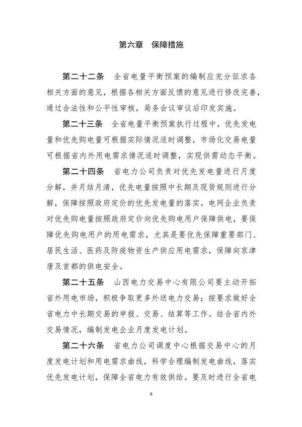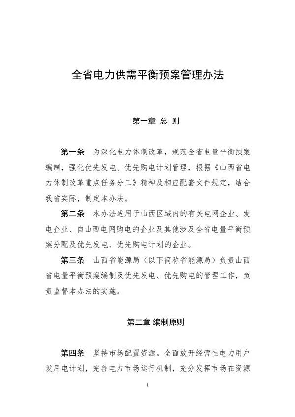 山西省能源局文件 晉能源電力發(fā)[2020]493號 關(guān)于印發(fā)《全省電力供需平衡預(yù)案管理辦法》的通知 省電力公司、山西電力交易中心有限公司、中央各發(fā)電集團公司山西分公司、蘇晉能源控股有限公司、北京能源集團有限責(zé)任公司、晉能集團有限公司、格盟國際能源有限公司、同煤集團漳澤電力股份有限公司、西山煤電(集團)公司發(fā)電分公司、省調(diào)各發(fā)電企業(yè)、各相關(guān)市場主體: 為深化電力體制改革,規(guī)范全省電量平衡預(yù)案編制,強化優(yōu)先發(fā)電、優(yōu)先購電計劃管理,現(xiàn)將《全省電力供需平衡預(yù)案管理辦法》印發(fā)給你們,請認(rèn)真貫徹執(zhí)行。 附件:全省電力供需平衡預(yù)案管理辦法.pdf 山西省能源局 2020年9月29日 |