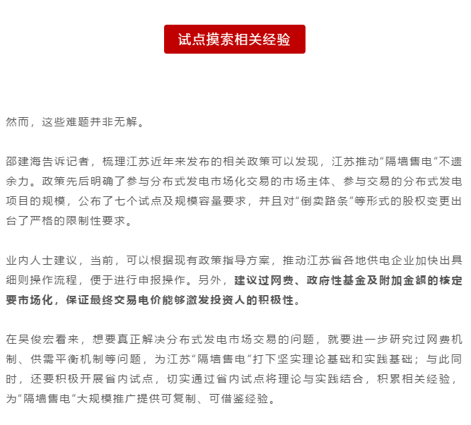 | “隔墻售電”江蘇版本,這些難題并非無解 |