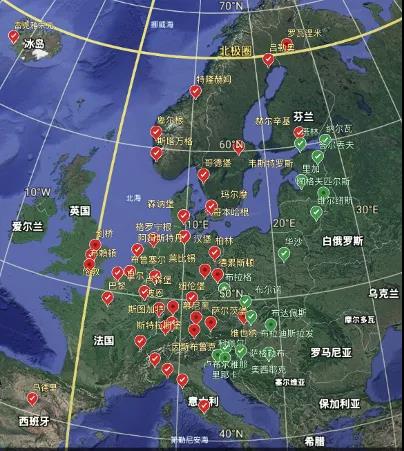 南至北緯40度的西班牙馬德里,北至北極圈,共計24國。